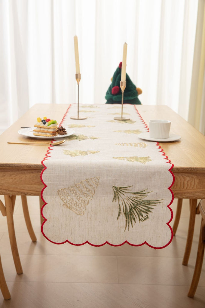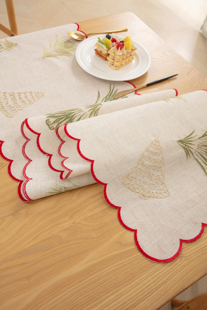 Este camino de mesa bordado está hecho de tela de lino fácil de limpiar, resistente a las manchas.