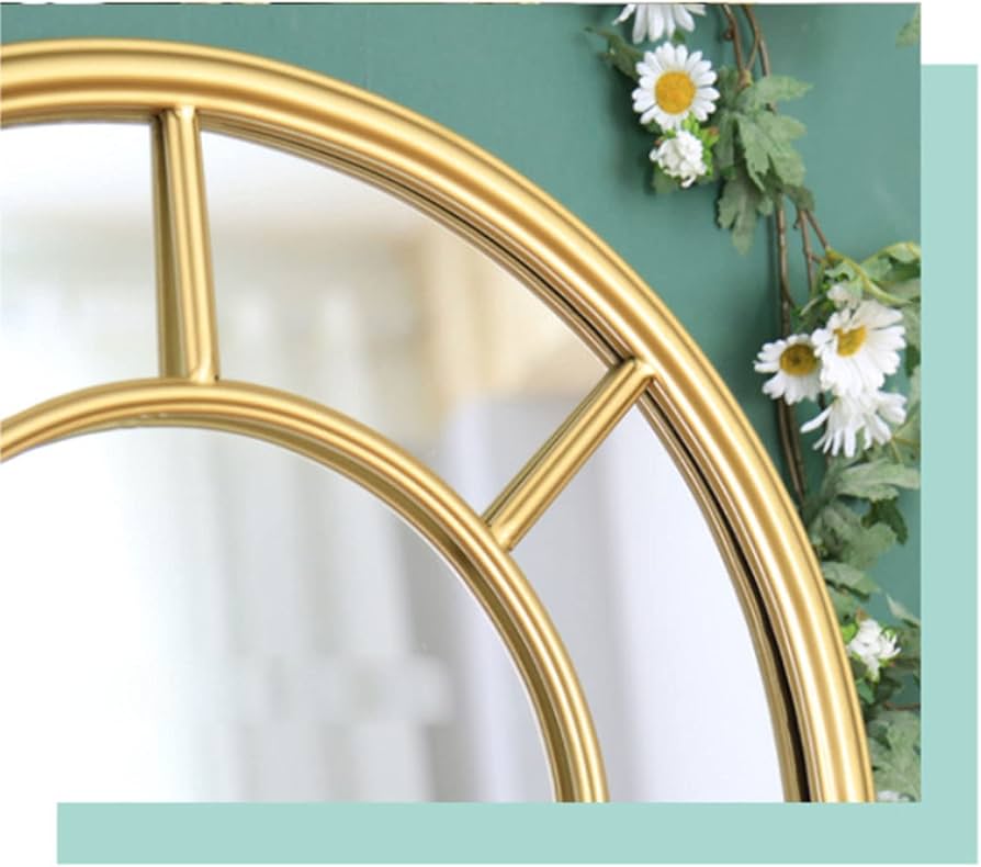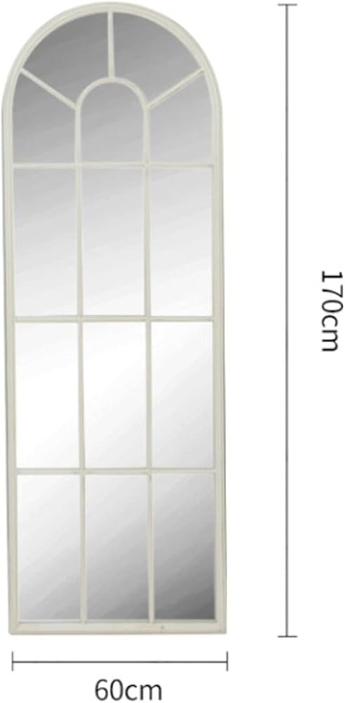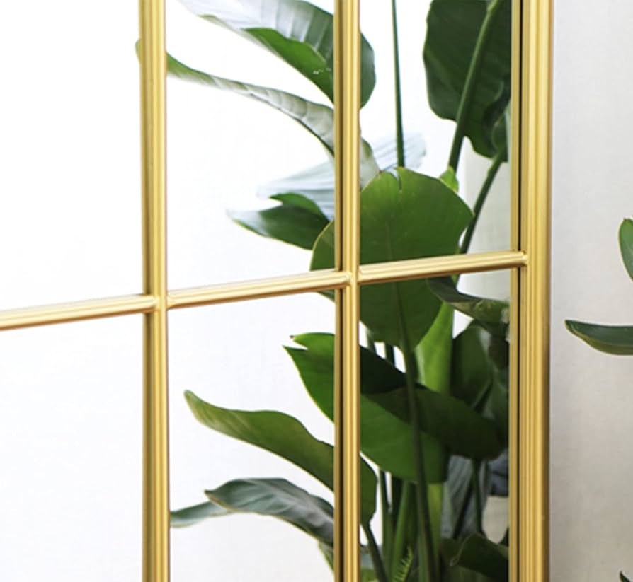 Aporta elegancia y amplitud a tus espacios con este hermoso espejo de cuerpo completo. Su marco acrílico en color dorado y diseño arqueado con divisiones tipo ventana brinda un toque moderno y sofisticado, ideal para dormitorios, salas o recibidores.